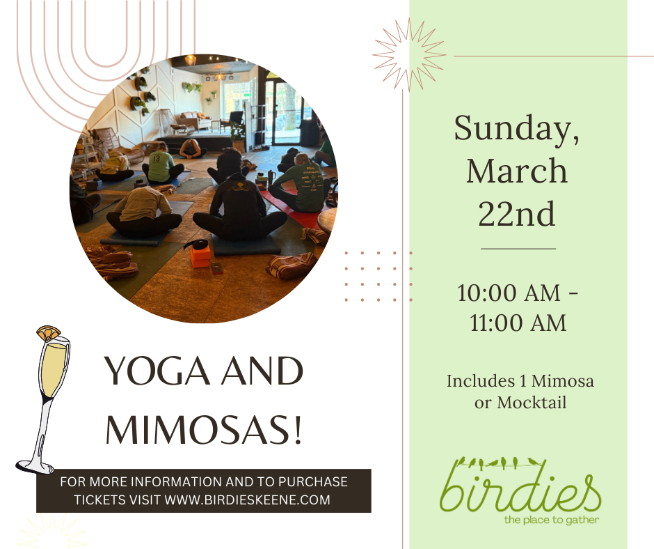 Join instructor Katelynn for a yoga class! $15 ticket includes a mocktail, $20 ticket includes a mimosa. Tickets available here: https://www.eventbrite.com/e/yoga-and-mimosas-1214-tickets-1924910201229?aff=oddtdtcreator