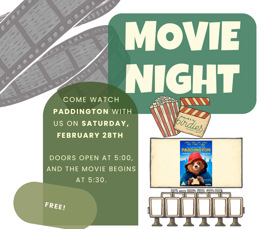 Join us for our monthly kids movie night: this month is Paddington, and the event is FREE! Doors open at 5pm, movie starts at 5:30pm. Food and drinks are available to purchase!
