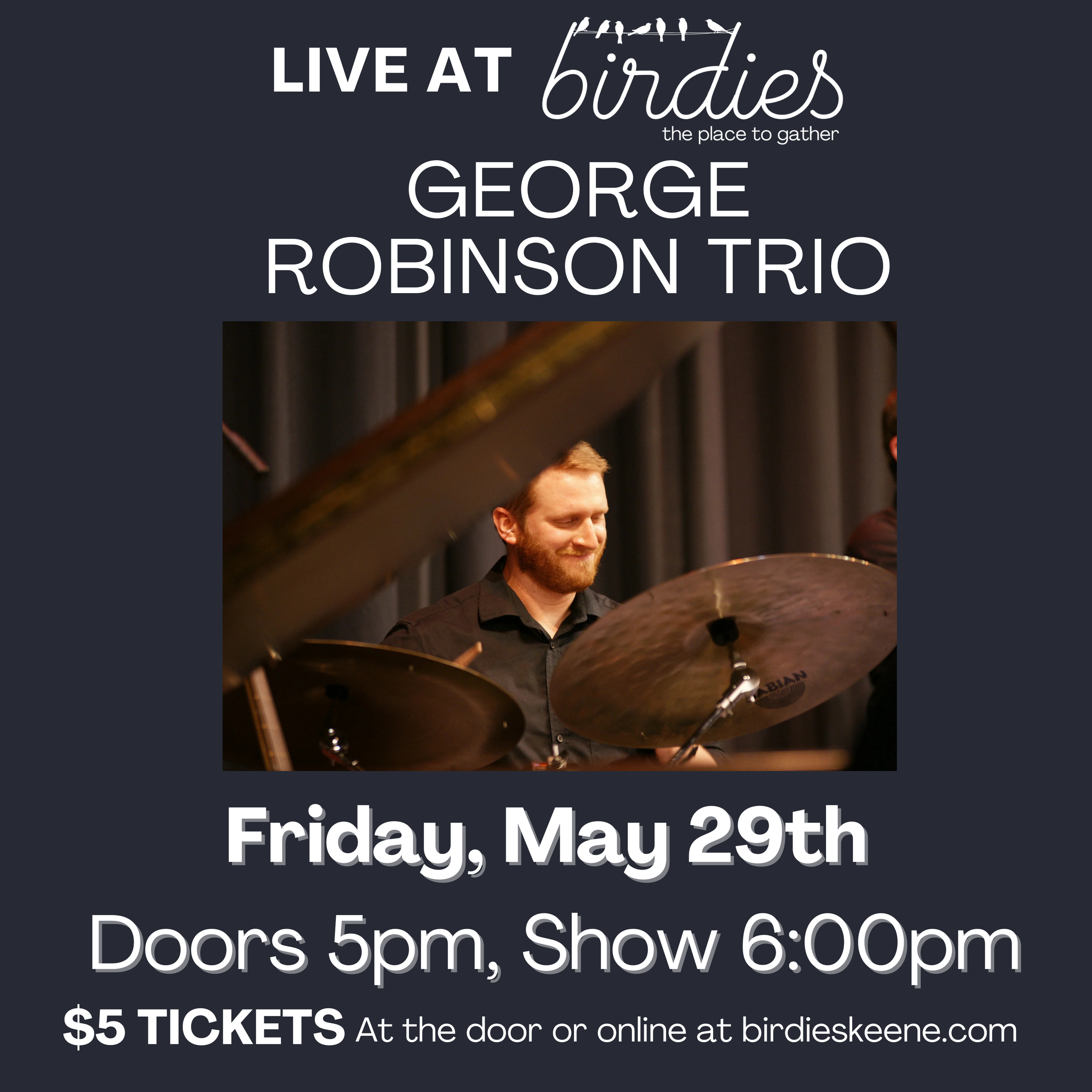The George Robinson Trio returns to Birdies! Doors at 5pm, show 6-8pm. Food and drinks available to purchase.